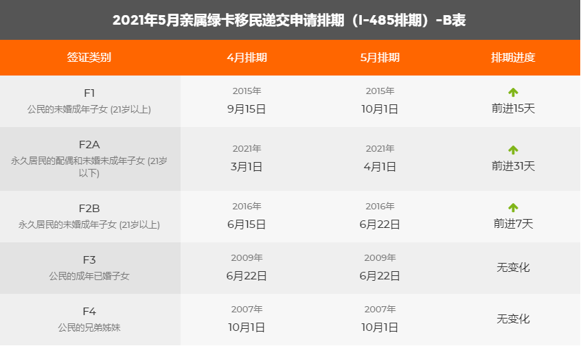 2021年5月美國移民綠卡排期表新鮮出爐!