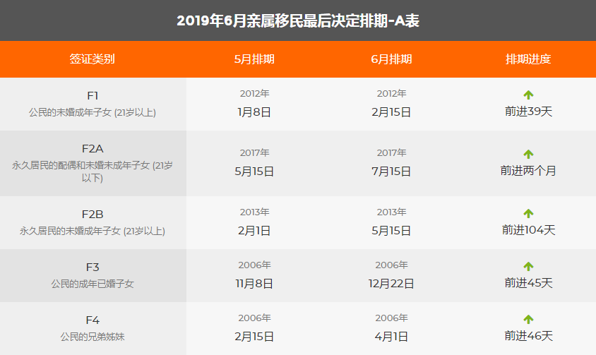 【表A】Application Final Action Dates 綠卡最后批準(zhǔn)日 (簡稱FAD)