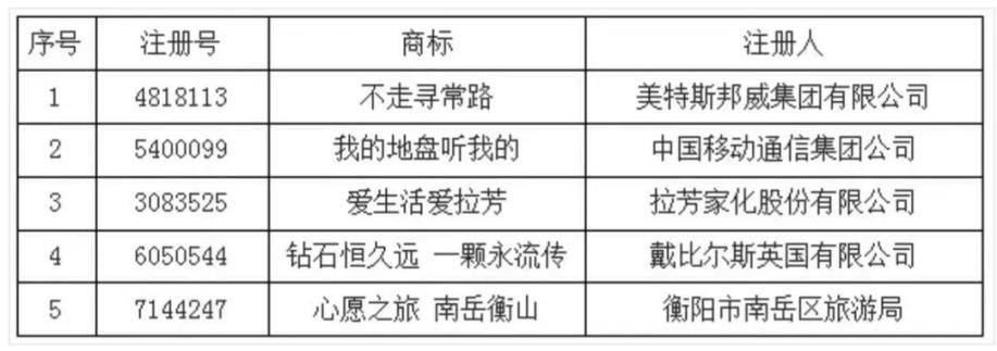 除“人生豐收時刻以外”,還有大量的廣告語得以獲準注冊,如:借此,鷹飛國際來為大家總結一下,廣告語想要成功注冊商標應該如何做?