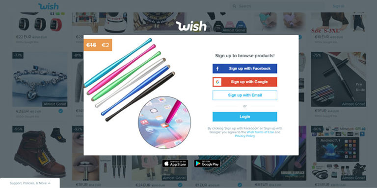 Wish成立于2010年,小企業(yè)和制造商可以在這個平臺上直接向消費者銷售商品。主要經(jīng)營四大類:電子、家庭、美容以及家居裝飾。