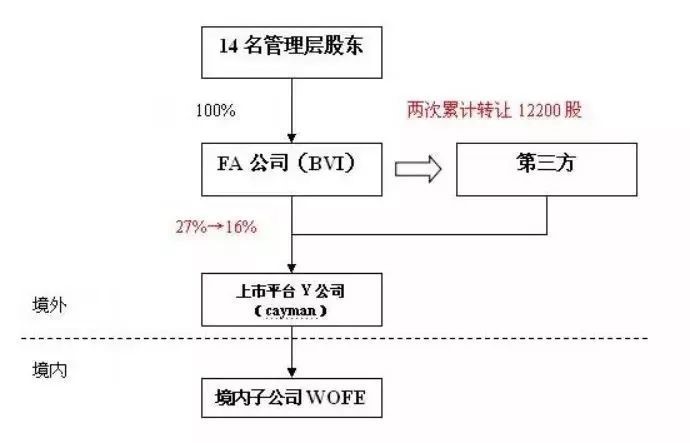 2009年至2010年,大股東FA(BVI公司)將所持上市公司Y的股份1.22億股對(duì)外轉(zhuǎn)讓?zhuān)塾?jì)所得超過(guò)18億港元。而FA的上層14名管理層股東,大都居住在中國(guó)境內(nèi)。
