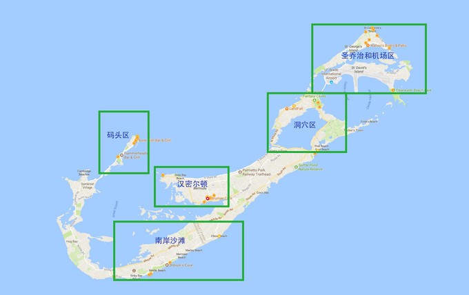 百慕大的景點(diǎn)大概可以分為這么幾個(gè)區(qū)域,從東到西分別為:圣喬治及機(jī)場區(qū),洞穴區(qū), 漢密爾頓 ,南岸沙灘,還有碼頭區(qū)。